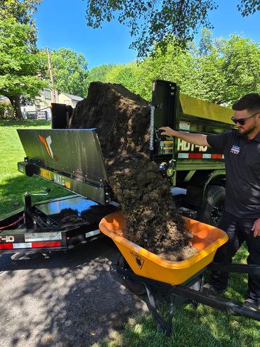The HDT with the Truck Mate® HD mount to the front allows you to fill from both® sides and by using the hydraulic lift of the trailer you can raise and lower the height of the HD to allow the proper height for most wheelbarrows or