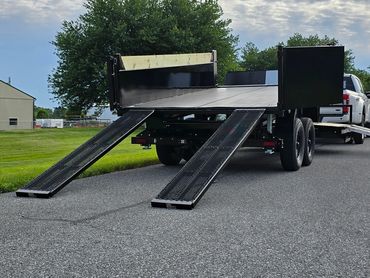 The HDT comes either in a 10 foot or 12 foot bed. Standard 14K Axles with the Truck Mate® HD already installed on the front. Why would you buy an ordinary dump trailer when you can have it all, right here!!! You can even get ramps to load equipment in and out of this beauty. It literally can do it all. You don't have to work like a Caveman any more!!!