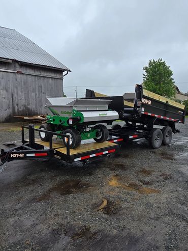 The All New HDT Dump Trailer gives you everything in one package. Use it every day like you would use any ordinary dump trailer. Load, haul, dump. Then when you need to knock out those mulch jobs, stone jobs or compost jobs, just press a button, lower the conveyor and dispense material on either side with the press of a joystick. Easily raise the bed to the height that you need and load wheelbarrows or top-dresser with the press of the joystick. Stop breaking your back and get more done. This thing makes every job easier.