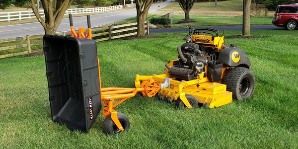 Why push a small wheelbarrow at 3 mph when you can carry 500 lbs at 10 mph, and you're not even walking. The large front wheels carry the weight of the load, not you or the mower. Why let your mowers just sit idle in mulch season, put them to work saving you effort, time and money. (Mount sold separately if needed)